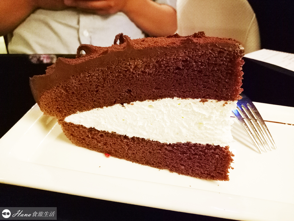 ▲主廚特製甜點,是巧克力波士頓派,蛋糕體略乾,