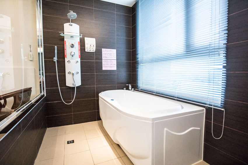 臥室另一側是浴室空間,還設置了大大的浴缸,坐了一天飛機,或是出外玩了一整天,泡個熱呼呼的熱水澡卸除一整天的疲憊,有浴缸很加分!浴缸也很大,我跟151兩個一起泡空間還蠻寬敞的