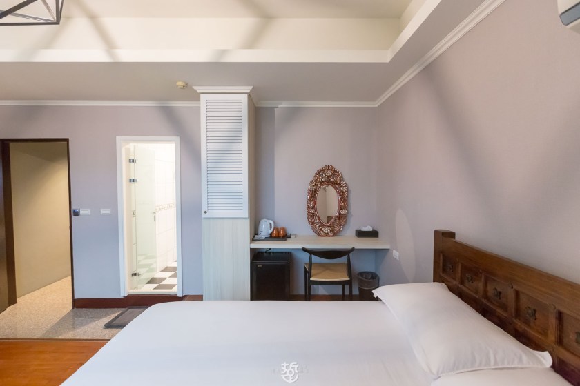 靠馬路旁的房間,是山景雙人房,採光充足可以遠眺山脈。窗戶採用氣密隔音窗,即使靠路邊,也不會覺得吵。