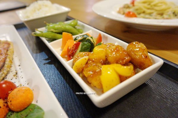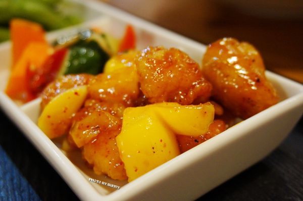 Bunny吃的有糖醋雞、小黃瓜、毛豆