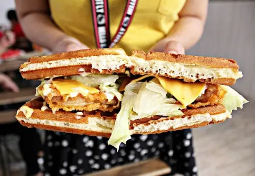 鹹味鬆餅:起司牛肉堡蔬菜 $75