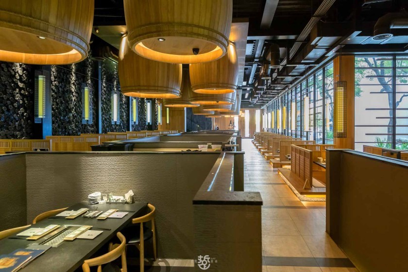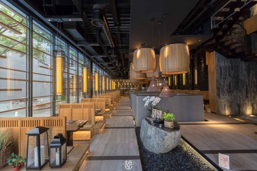 大型的落地窗外,是景觀水池,坐在窗邊用餐,彷彿聽得到流水與風聲,相當有禪意。