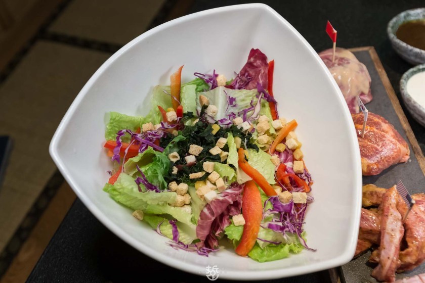 田園鮮蔬沙拉可解膩,有和風醬以及凱薩醬二擇一。