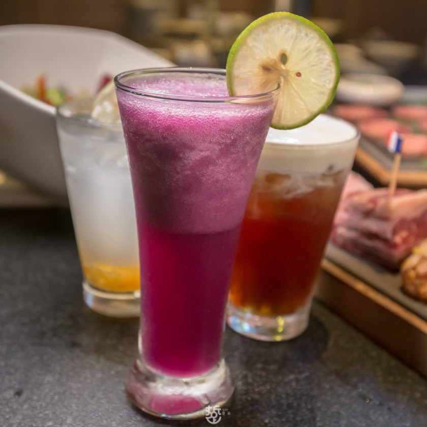 除了酒水外,也提供全家大小都歡迎的奶蓋紅茶、蜂蜜紫高麗汁以及檸檬柚子氣泡飲。