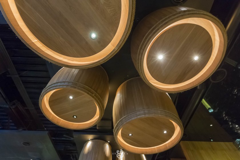 店內的裝潢,可以看得出老闆的品味與堅持。光是這些天花板上酒桶,當初是特別請人訂製這樣的尺寸與大小,在製作上可是相當不簡單,才能夠呈現這種其實磅礡的質感。再加上要維持像開幕時一樣的嶄新,每月的清潔打掃應該花了不少功夫。