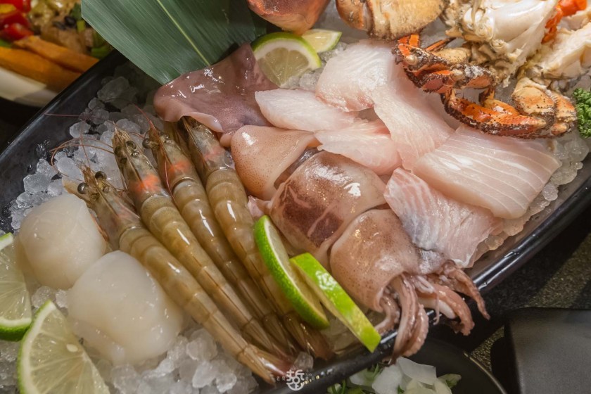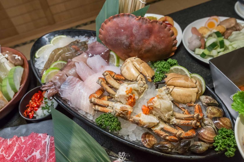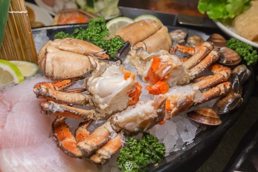 台中餐廳推薦│昭日堂鍋煮單人套餐$330,雙人份霸王蟹海陸盛合份量超豐富,鴛鴦雙鍋底,另享自助吧水果、飲料、時蔬無限供應