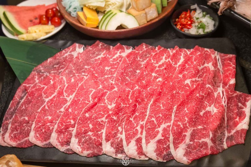 這裡提供的是鴛鴦雙鍋底,有麻油鍋、番茄鍋、酸菜鍋、麻辣鍋、味噌鍋以及老饕鍋。單人套餐只要$360起,就可在氣氛這麼好的日式禪意風格餐廳,享受火鍋及自助吧,相當划算。