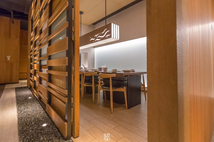 中間長條桌適合團體聚餐,兩旁的座位是背靠背的隔間,用餐算是寬敞舒適。