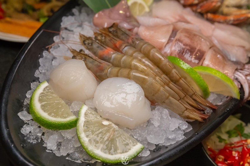 海鮮盤有霸王蟹母、鮮蝦、鮮魚、蛤備以及干貝,而霸王蟹母就是來自愛爾蘭的德文郡蟹。