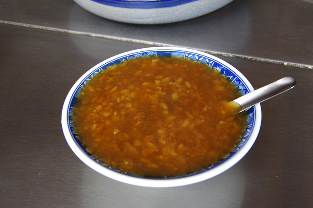 之前就聽過朋友說把膨餅放在花生湯裡的吃法,始終無法想像這樣的滋味如何