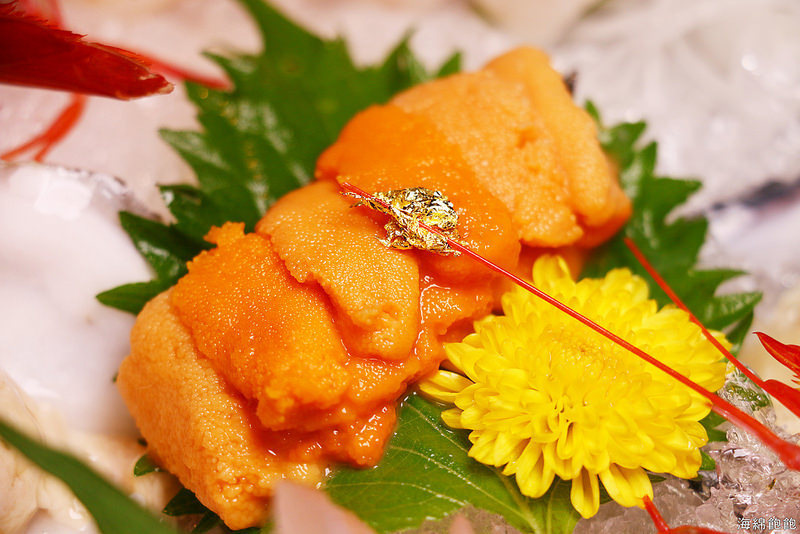 整排的馬糞海膽,上面以金箔點綴