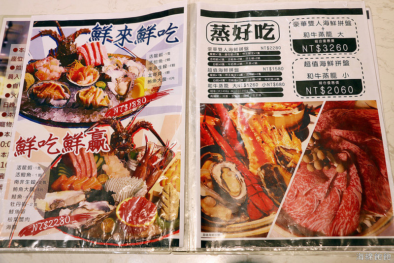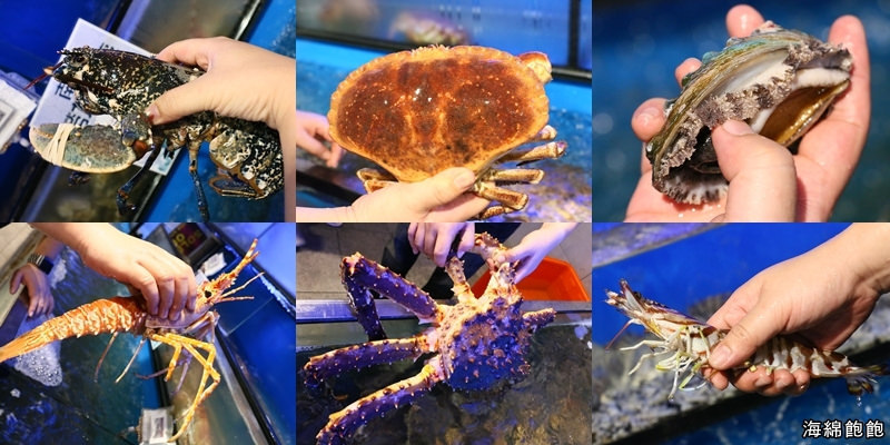 有帝王蟹、波士頓龍蝦、鮑魚、生蠔、鮮蝦、蛤蠣、透抽
