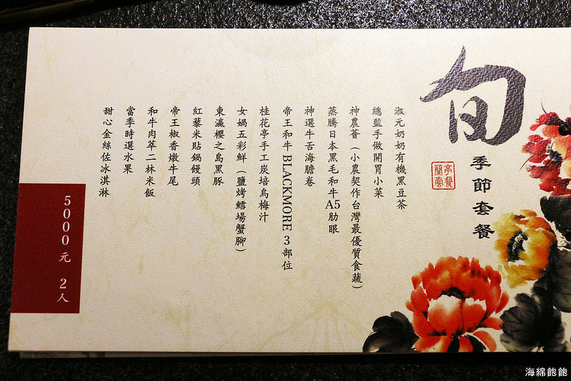 這天品嚐的是〝旬季節套餐〞5000元/2人