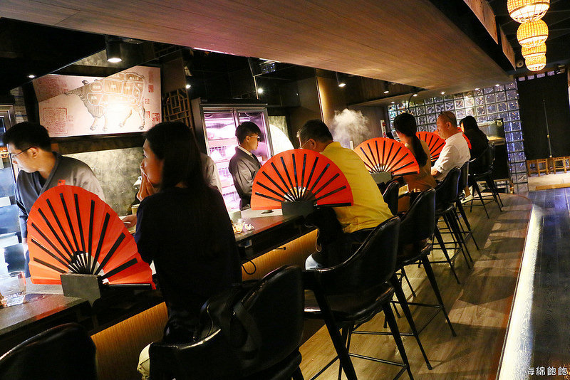 吧檯座位間以扇子隔開,很有個性