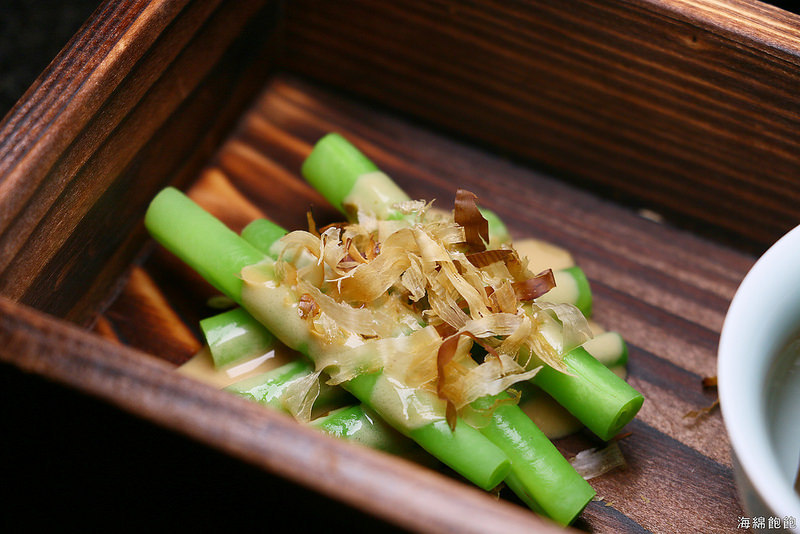 從左到右,胡麻四季豆、牛肉凍、綠竹筍