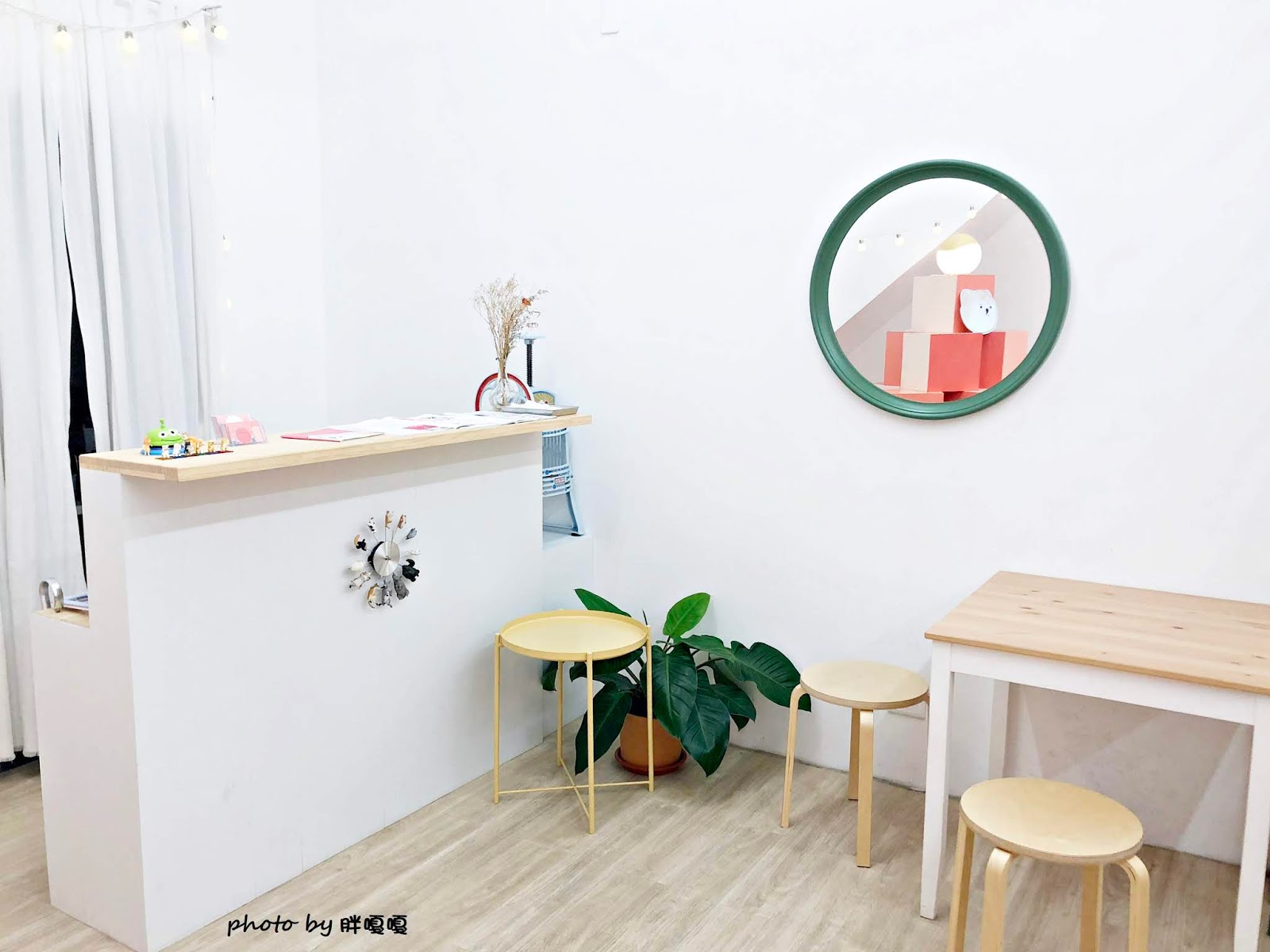 整體以簡約的白色與大量粉色方塊為主軸