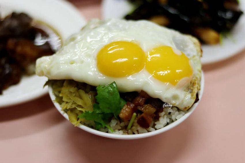 說這是老五鹹粥的招牌也不為過,因為滷肉飯加蛋本來就很誘人,竟來個雙蛋,這未免也太犯規了!