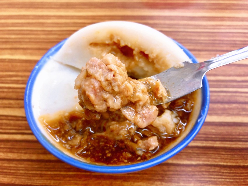 特別的是,店家會先挖出三分之一的粿體放在上面,有個小山丘的型狀,很可愛阿~