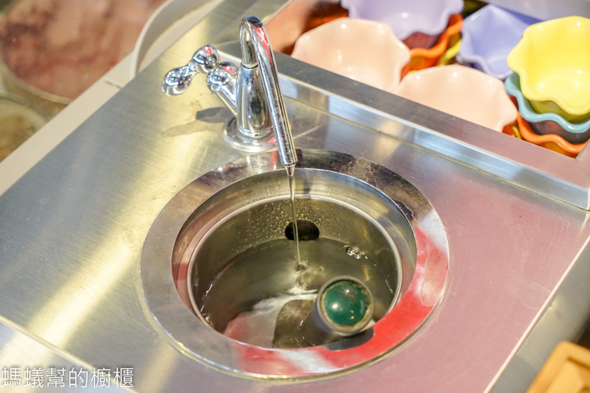 勺子放置在流動的水槽裡,使用時不用拿的整支黏呼呼,這點設置相當貼心。