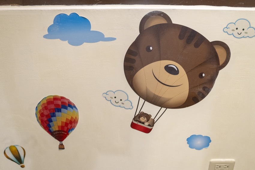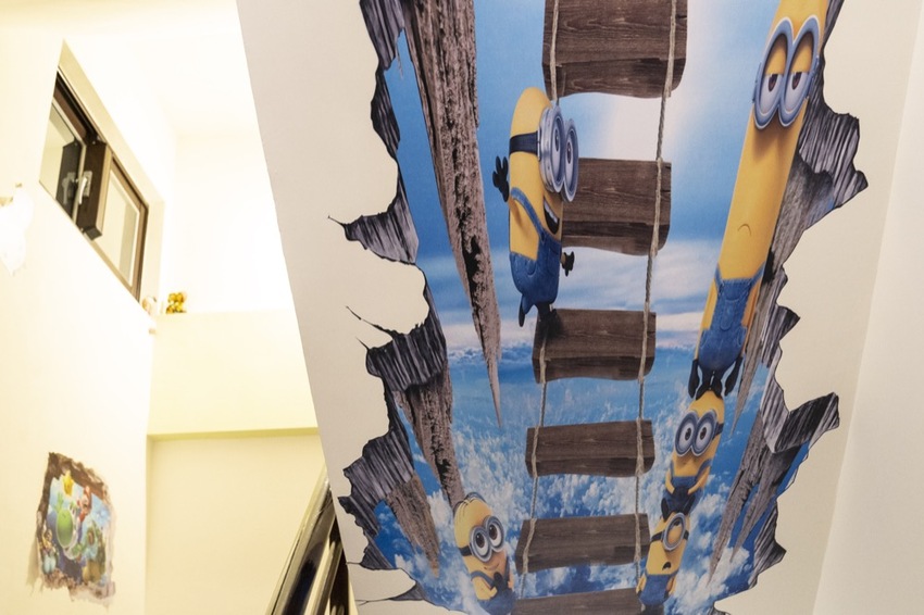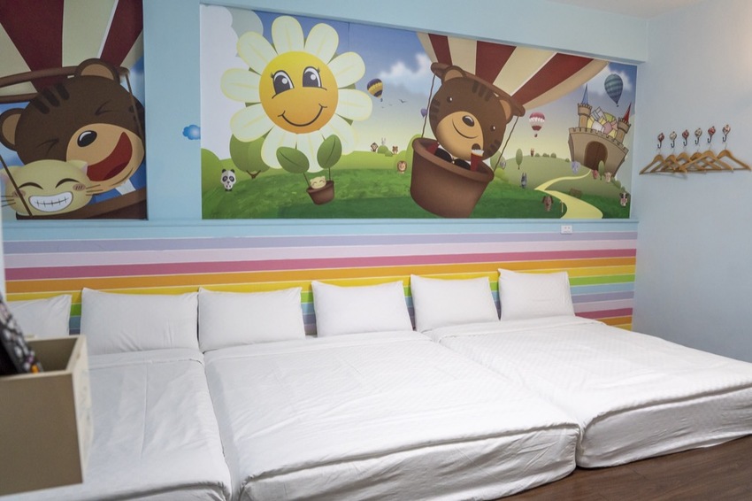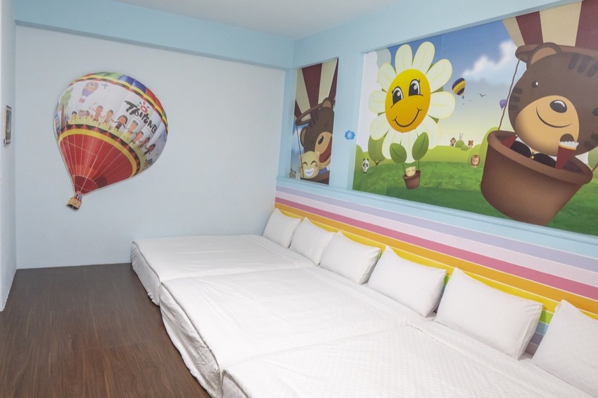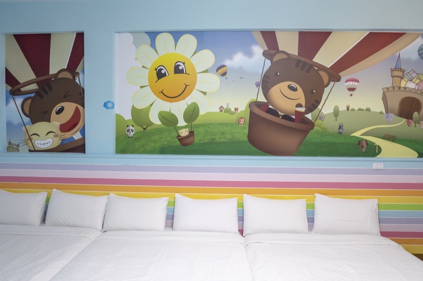 台東貓追熊親子民宿 除了設施遊樂場,在樓梯間以及裝潢上面都有可愛的動畫貼圖,從進門到房間都童心未泯的興奮!!