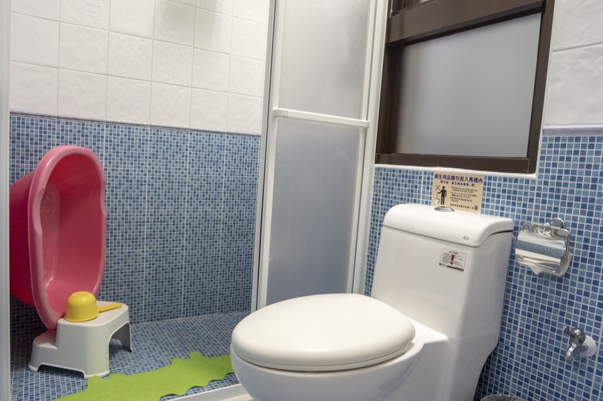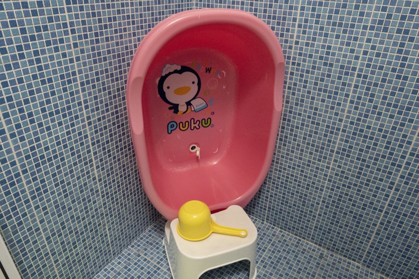 浴室也貼心備有兒童澡盆、換洗下來的髒衣物袋
