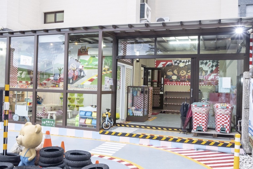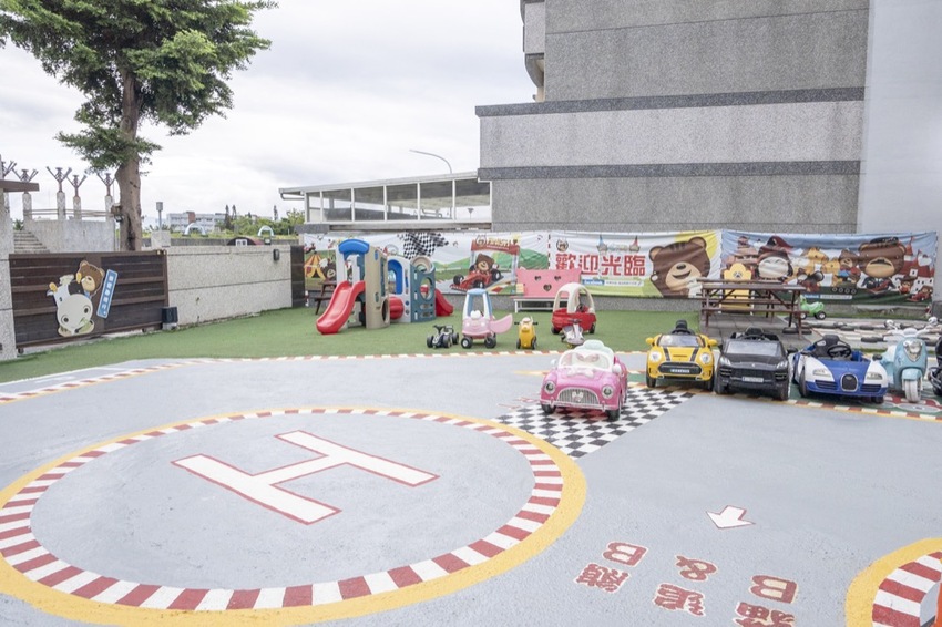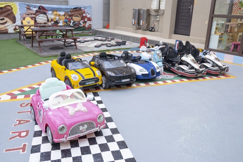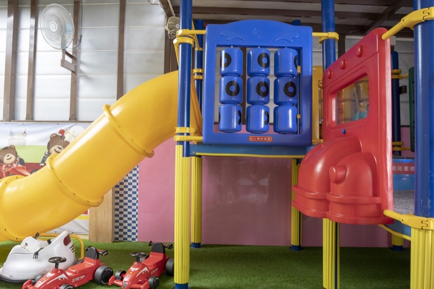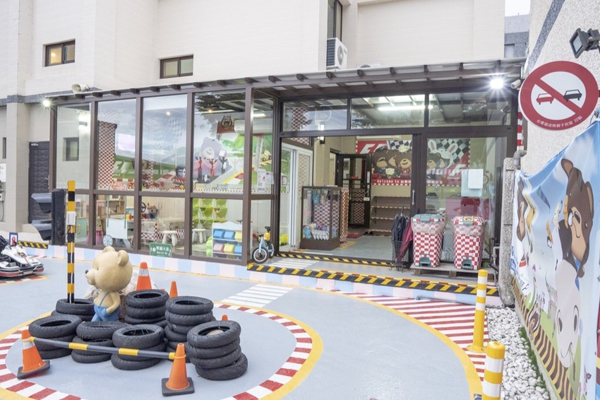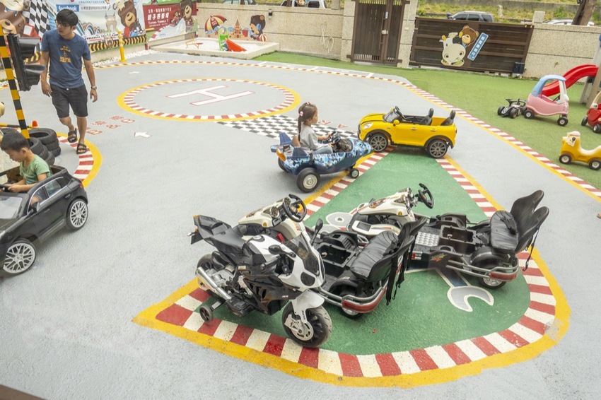 貓追熊親子民宿 進去以後簡直就像一座小型遊樂園,小型遊樂區、溜滑梯、室外賽車場、讀書間等等