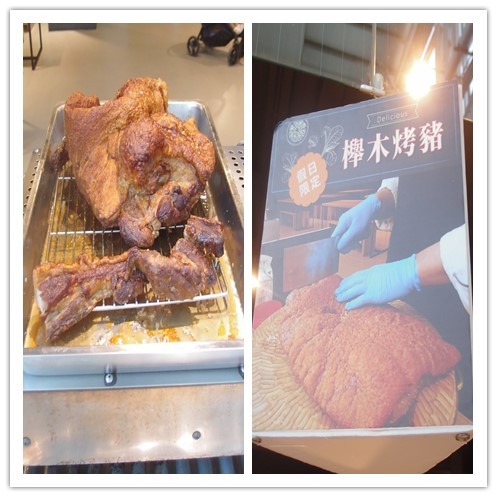 走到餐廳另一頭,還看到販賣這個假日限定的櫸木烤豬,真令人口水直流啊~