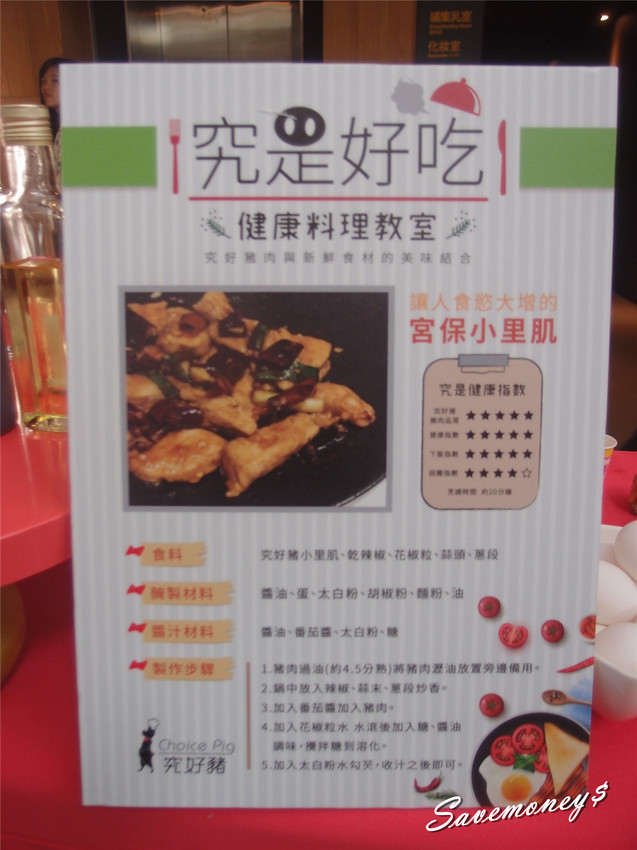 當天的主題是宮保小里肌,這面立牌上還有烹飪步驟