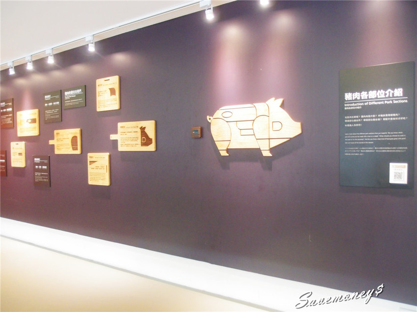 這面牆是豬肉切割後各部位的介紹
