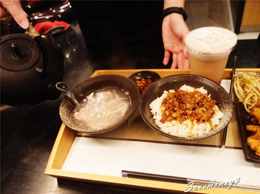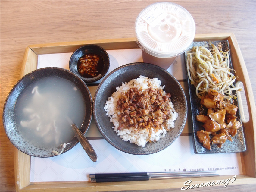 可以看到套餐內容包括現沖小里肌湯,滷肉飯,配菜有炒杏鮑菇和豆芽
