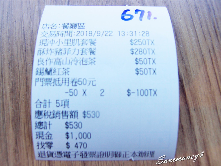 飲料錫蘭紅茶和高山冷泡茶都是$50,剛好可用門票折抵