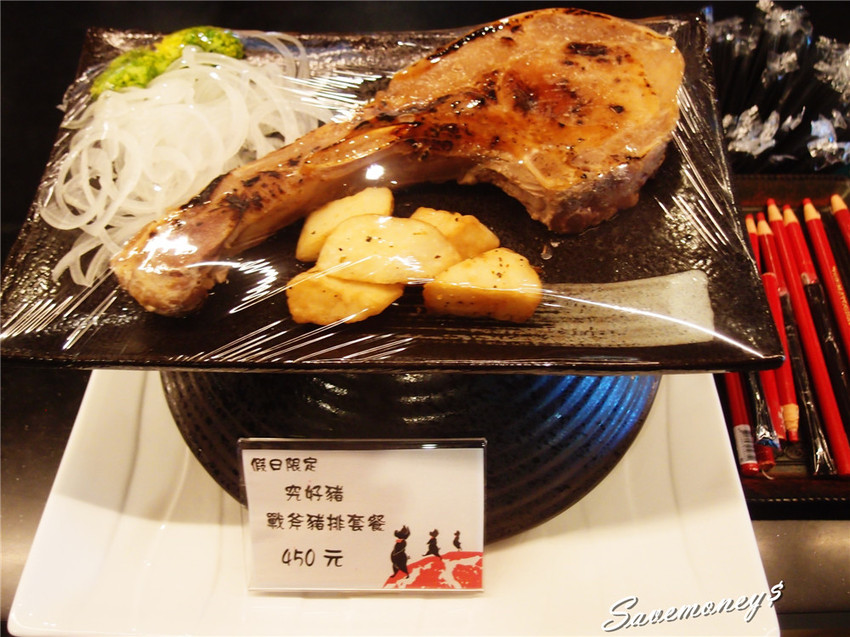 剛才從餐廳外面就一直看到的戰斧豬排套餐本尊