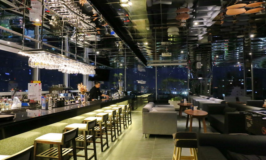 酒吧裡大量使用不銹鋼鏡面設計,讓日昇日落都充滿光影移動的炫麗色彩,彰顯【空中景觀酒吧】獨特之處,看!有4個夕陽。