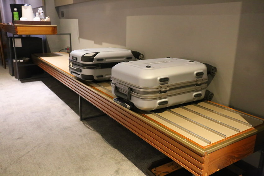 1.行李箱架夠寬,足足可放3個小行李箱,2個大行李箱。(絕大部分旅館只有1個行李箱架,怎麼可能夠用?)
