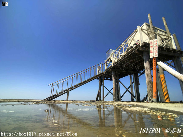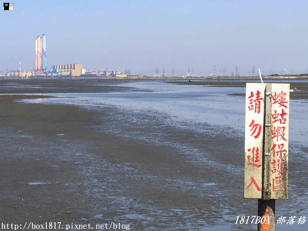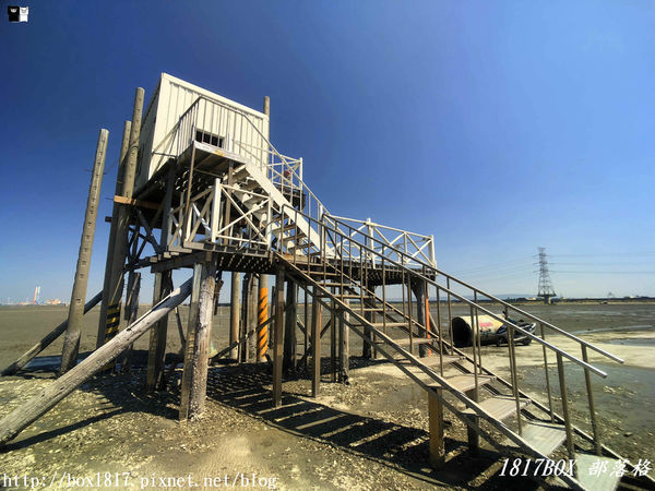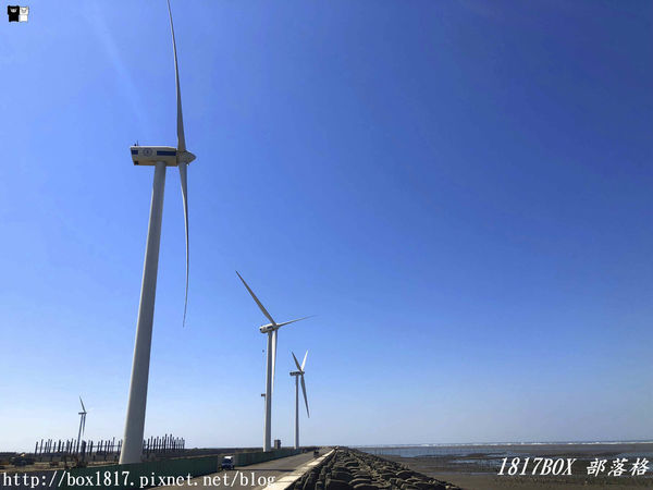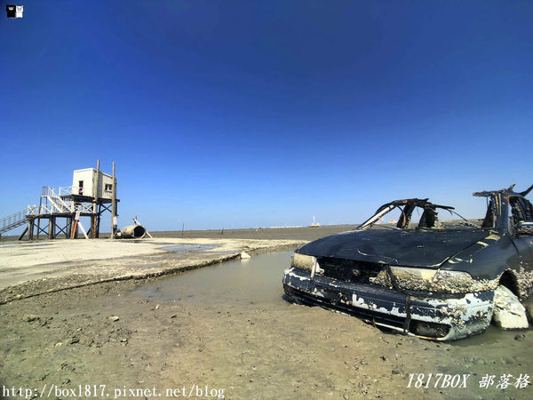 來到彰化伸港曾家村出海口,退潮的海面跑出乾涸的道路,