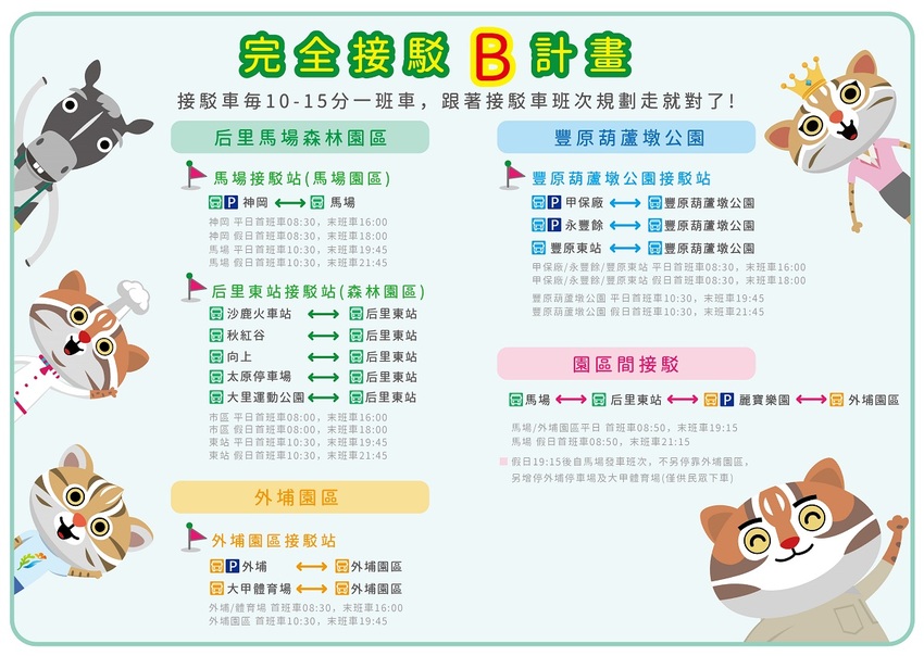 公車族可以參考這張圖搭車到后里馬場森林園區