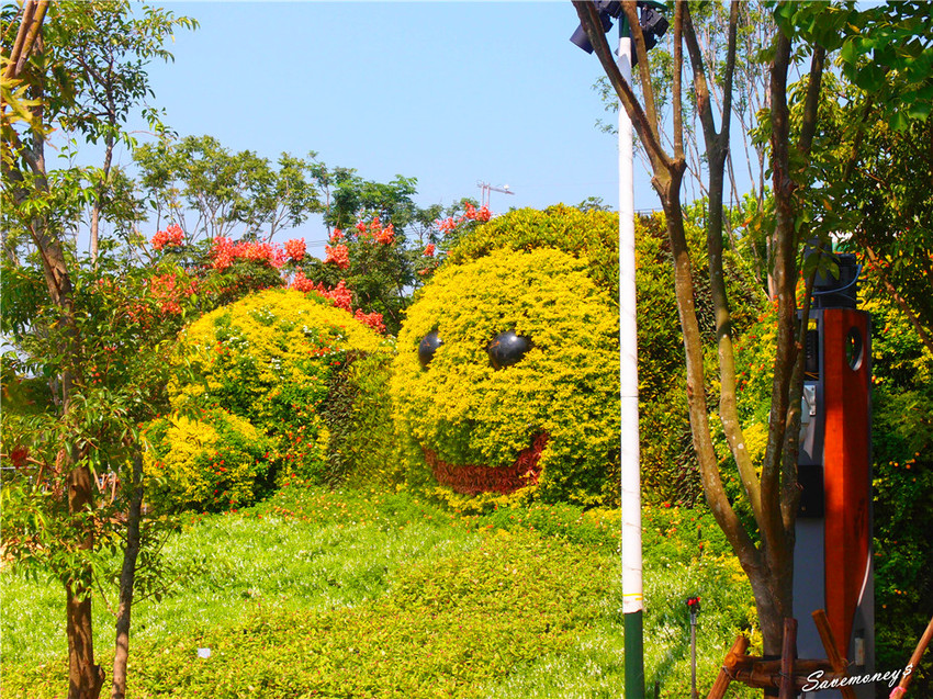 原來全貌是個用花卉做出來的笑臉大猩猩呢!