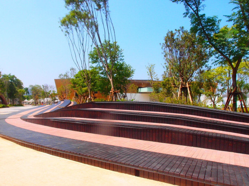 我喜歡入口旁邊這個波浪型的階梯設計,可以疏散人潮又方便拍照