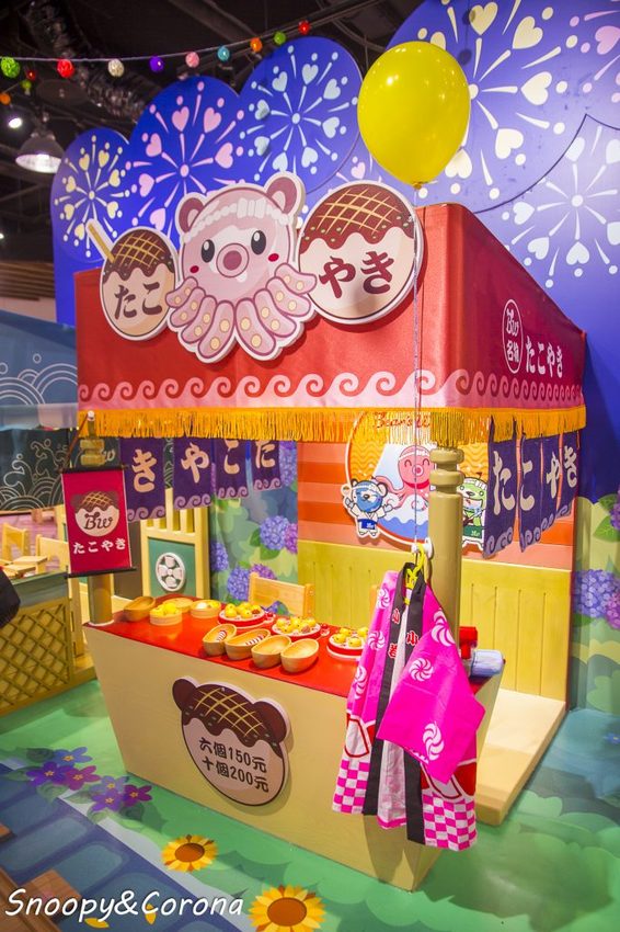 夏祭花火節好適合穿著日式浴衣來逛逛,這裡設計了六個精美的食玩攤販,