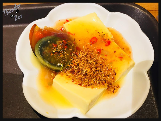 套餐加點的小菜,簡稱-泰味版皮蛋豆腐。 把雞蛋豆腐淋上泰式酸辣醬,配上四分之一顆的皮蛋,這味道…有點難以形容呢︕雞蛋豆腐有著濃濃的冰箱味,讓人不知道開封後是放了多久︖但是看豆腐的濕潤度不像放了很久,還是放入冰箱保鮮時沒用保鮮膜隔絕氣味呢︖而皮蛋也有一點點的冰箱味道……要知道,皮蛋是一個氣味很重的食物…居然和雞蛋豆腐一起有了冰箱味這實在是………⁈