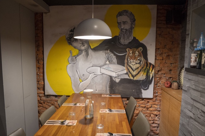 牆面上有抽象派的畫作,讓整體氛圍感覺更隨性了一點