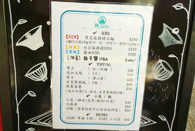 P.S.今天在店家學到~原來soba是日本語“麵”的意思,不一定是指蕎麥麵。麵Sato的麵主要是用麥粉製作而成的唷!!!