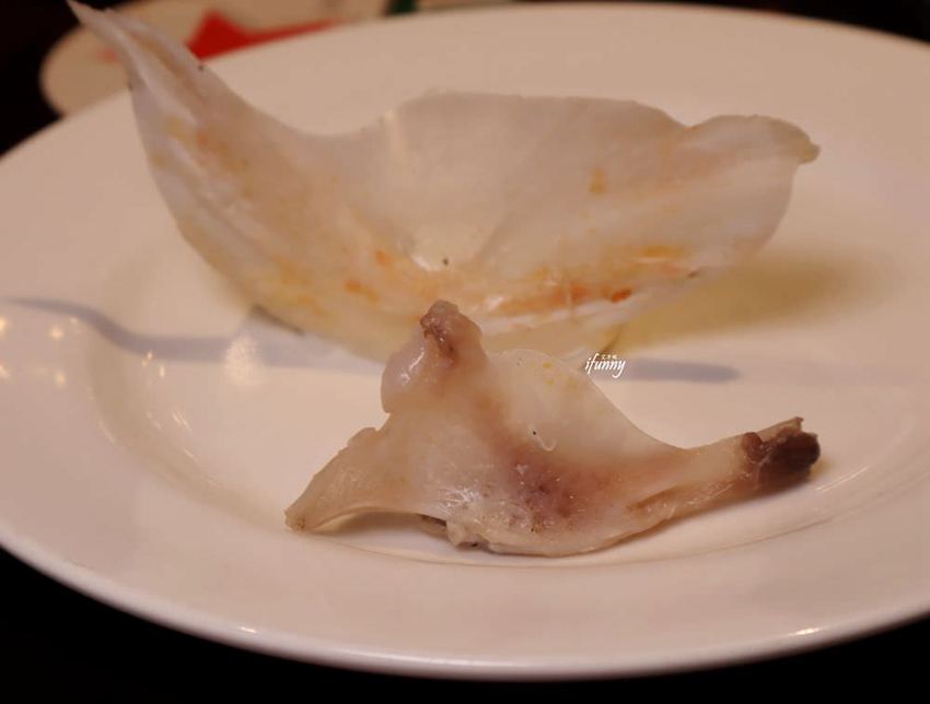 當天一起用餐的一位大哥,剛從內地回台,他要我們玩個遊戲,就是把上圖鰱魚頭中的兩個魚骨找出來,這可是鰱魚獨有的,別的魚種可是沒有的喔!只要把這兩個魚骨想辦法立起來,那成功的人肯定從此大發。其實有困難度,但過程很有趣,大家可以試試喔!