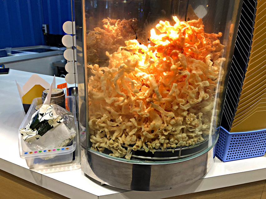炸魚麵是用魚漿及地瓜粉下去炸的,吃起來酥脆,偶爾伴隨著魚香味