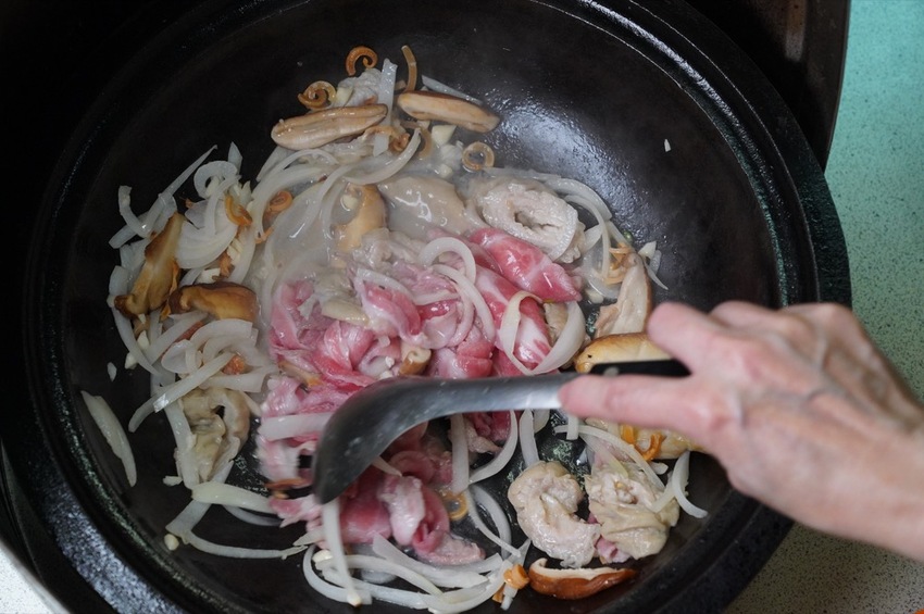 加入高湯煨煮後,就可以放料啦