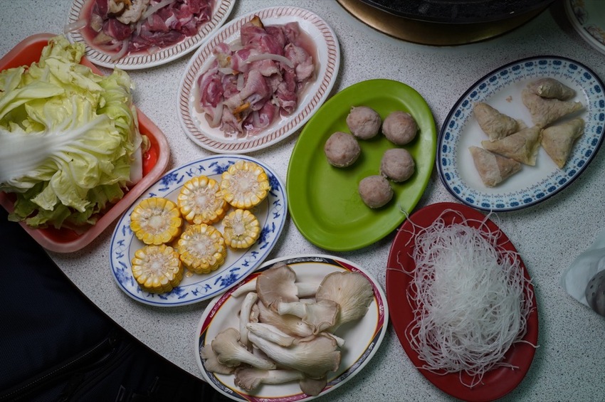 轉眼間桌上已經放滿了各式各項的食材了