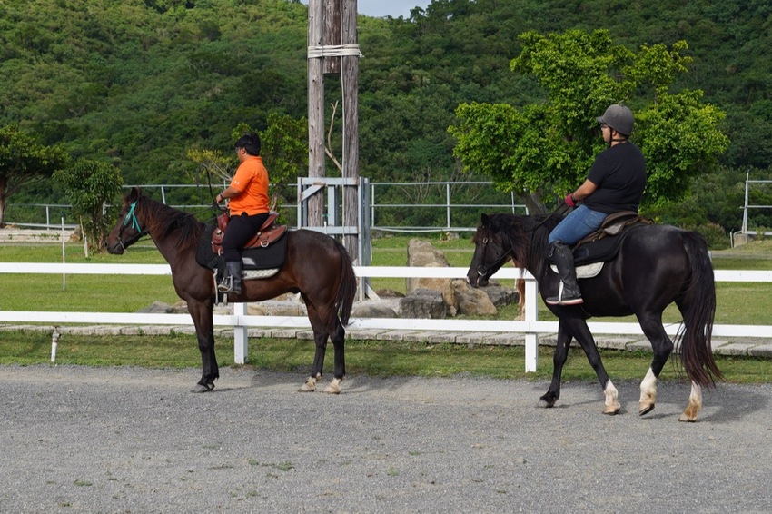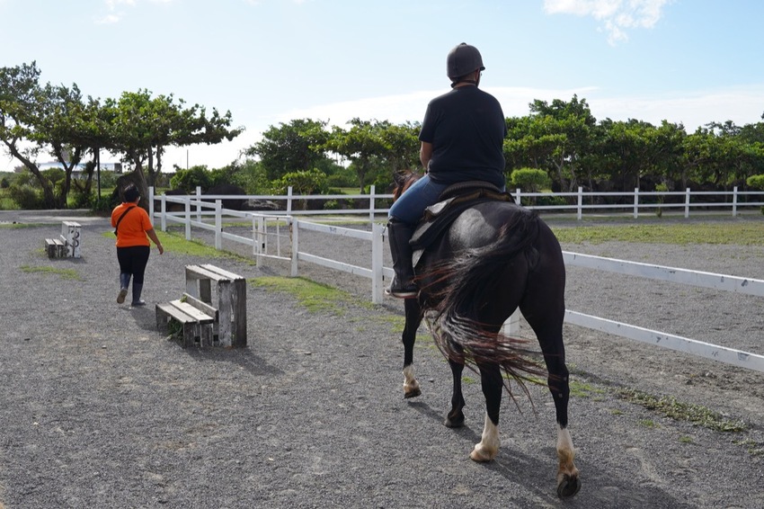 上馬前會先調整好最好的狀態,剛開始會由助教牽著你的馬跟走,告訴你如何拉繩的時機及指令