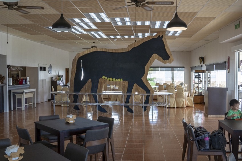 吃飽飯以後才有力氣活動運動,看到一隻大馬裝飾以及馬具的餐廳佈置 好像真的來到了一個馬的聚落