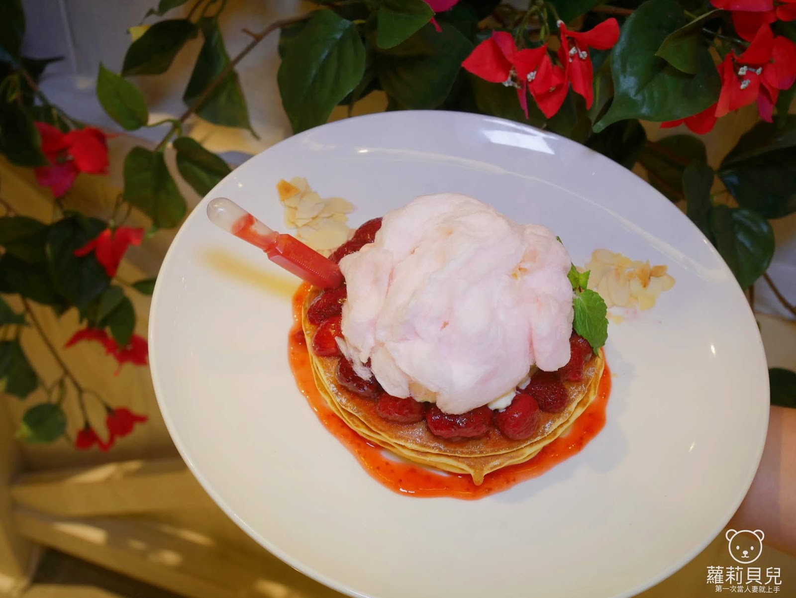 粉紅棉花糖草莓鬆餅