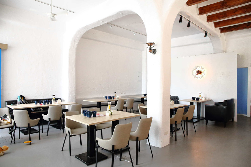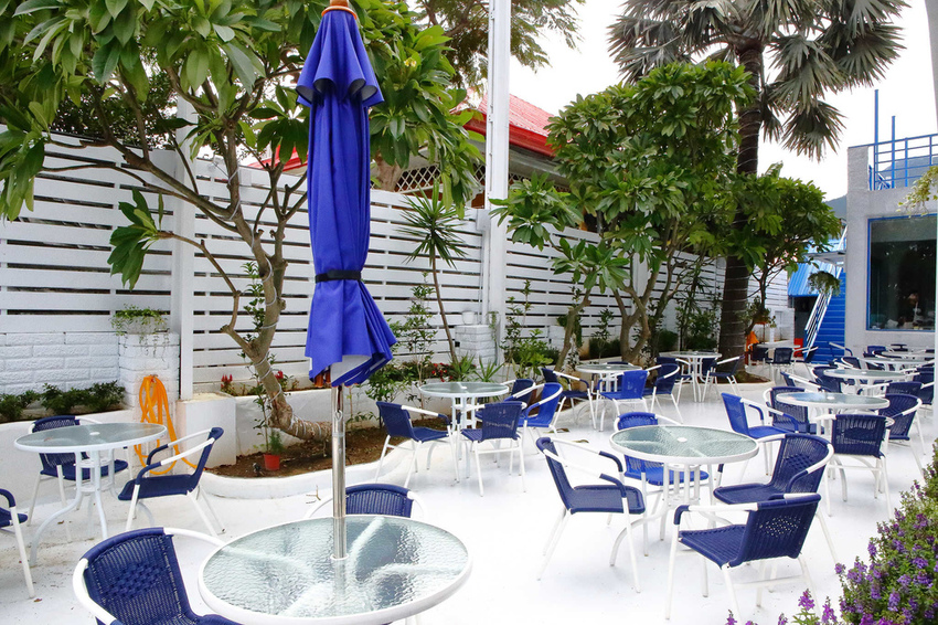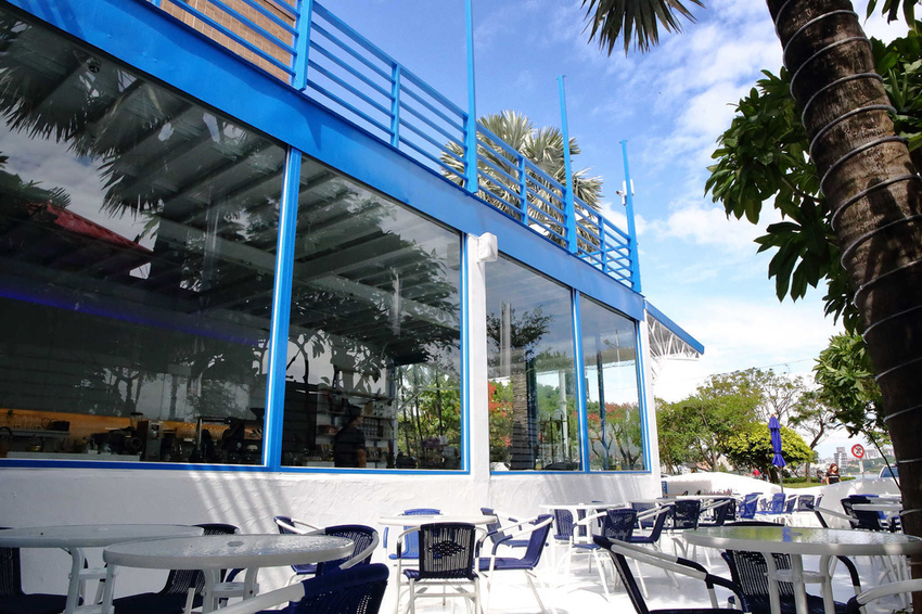 一走進餐廳,映入眼簾的就是藍白分明的地中海色系建築,濃濃異國風網美拍照勝地